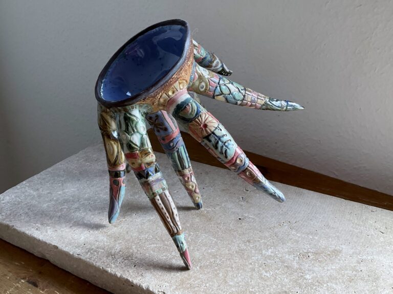 Mijn werk is aards, met flinke contrasten tussen glanzende en ruwe oppervlakken. Ik probeer ook altijd een twist aan mijn werk te …