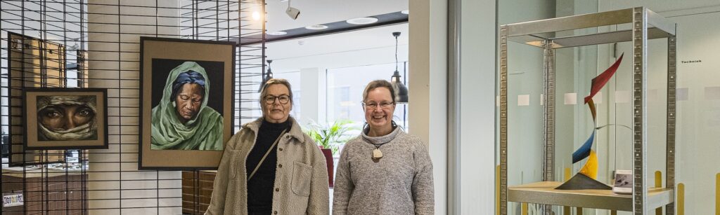 Vanaf 27 februari t/m 24 april 2026 exposeren Else Dhondt en Pauline van Zundert in het gemeentehuis van Houten. Else (zie ook in Kunstenaar uitgelicht) met haar portretten van gesluierde vrouwen en Pauline met ruimtelijk werk (zie ook Kunstcafé 7 februari). De werken zijn te bezichtigen tijdens de openingsuren van het gemeentehuis.