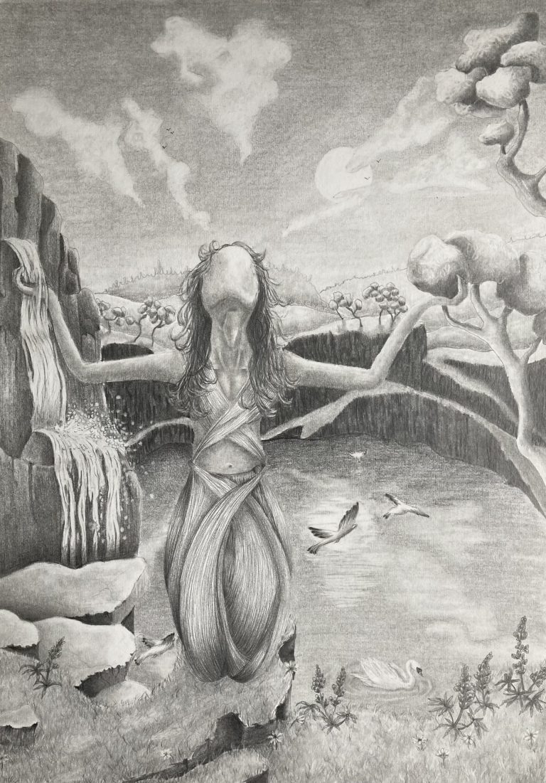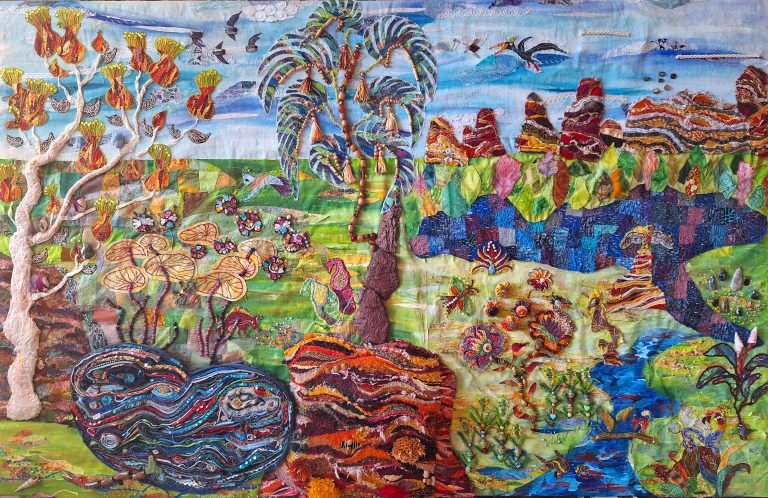 Dit is een fantasielandschap. Het bestaat uit meerdere losse stukken die ik later met elkaar heb verbonden. In dit werk zitten diverse …