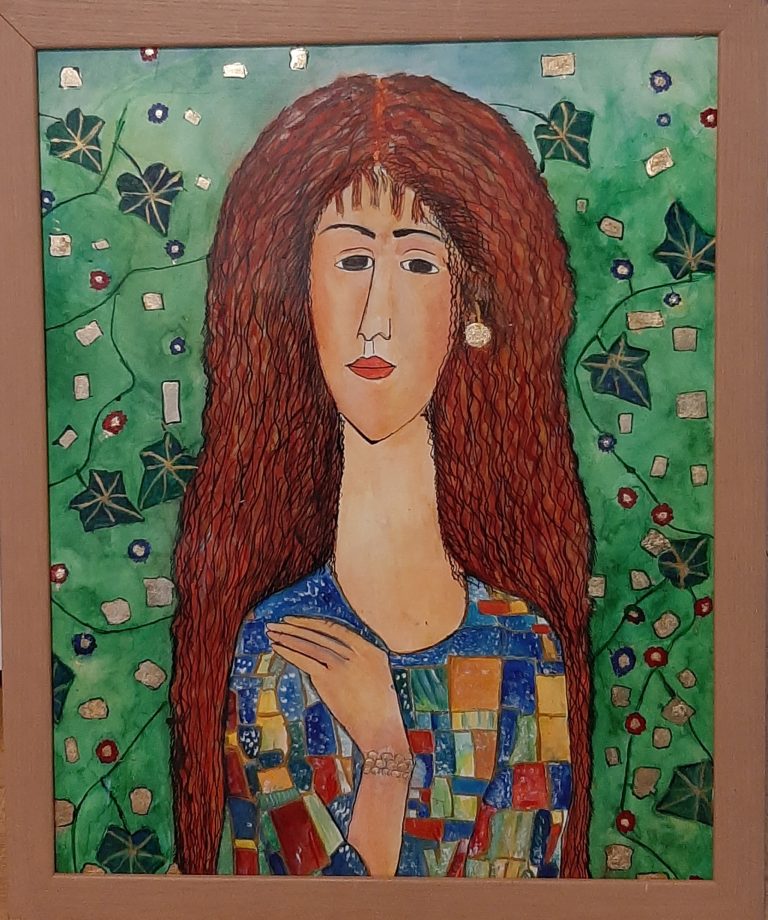 Ontdek Egypt girl, een mixed media schilderij dat de mystieke schoonheid van oude culturen samenbrengt met moderne kunst. Dit werk is uitgevoerd …
