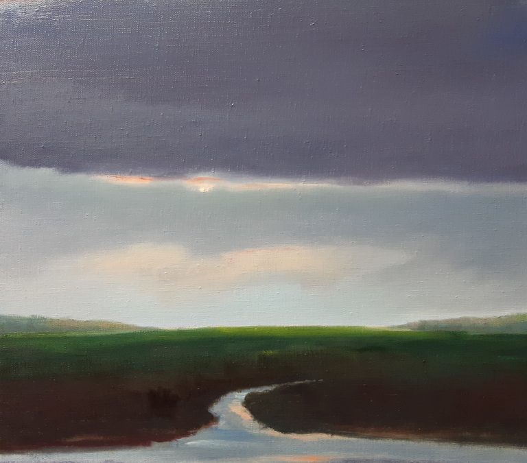 Weidsheid in het landschap. Acryl op doek in houten baklijst 50×60