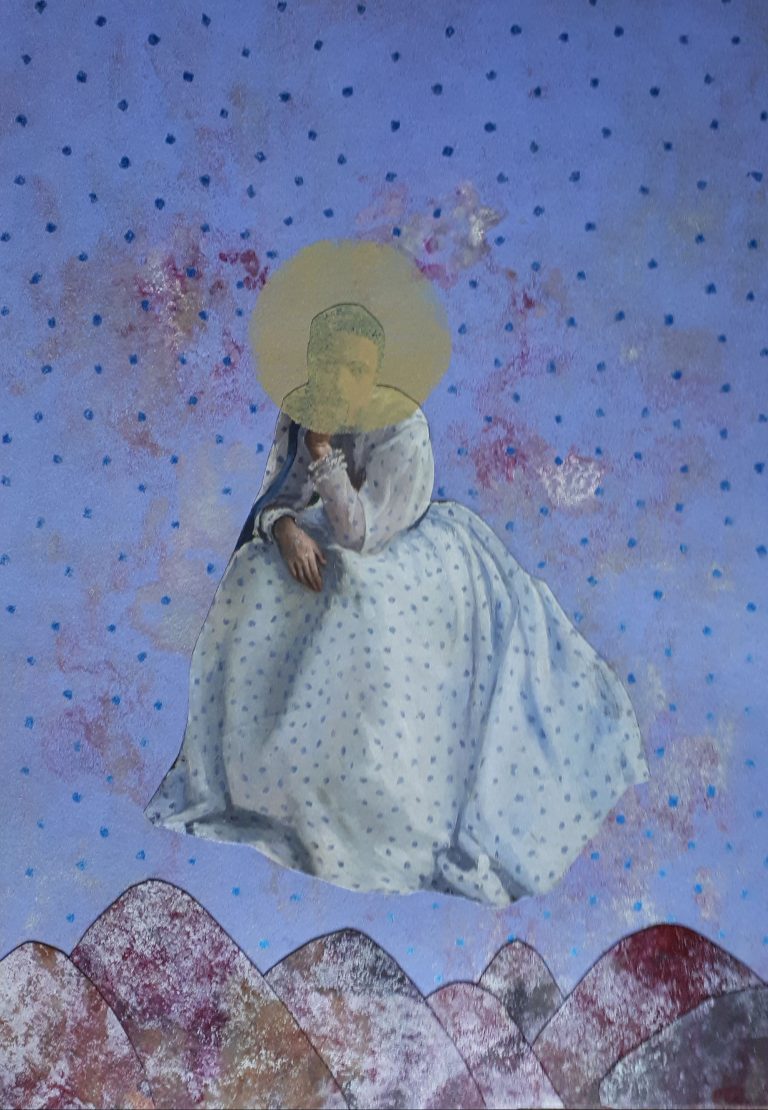 mixed media, 24/30 cm, 2019 Dit werk maakt deel uit van de Serie Mirrors of the soul uit 2019. Het is een …