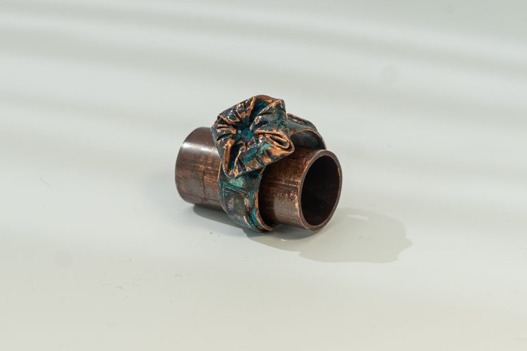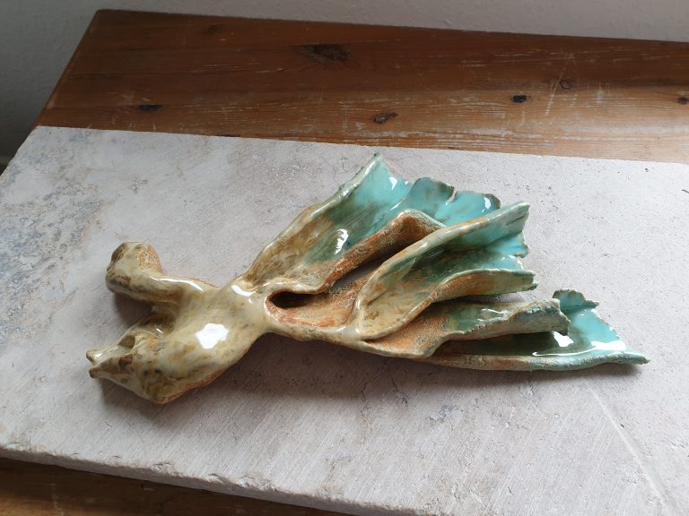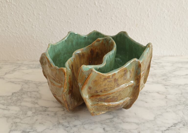 Handgevormd, geïnspireerd door een kunstwerk in het Keramiek museum Princessenhof in Leeuwarden.
