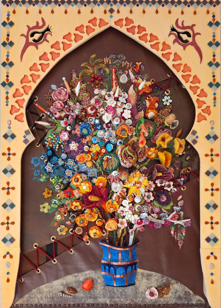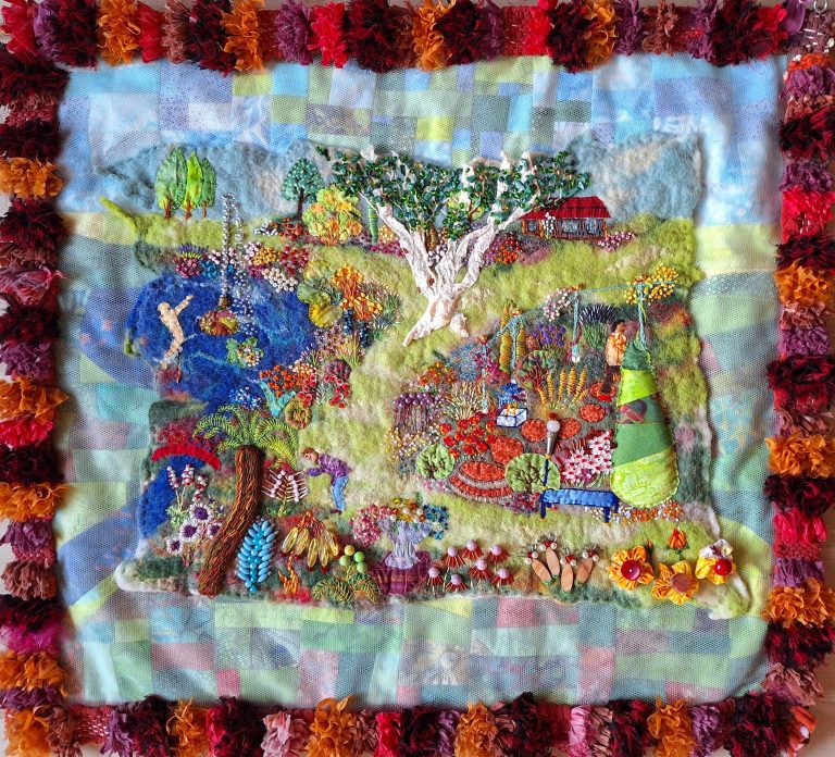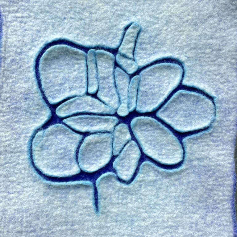 Viltwerk met de techniek van de gebroken aarde. Afmeting 20×20
