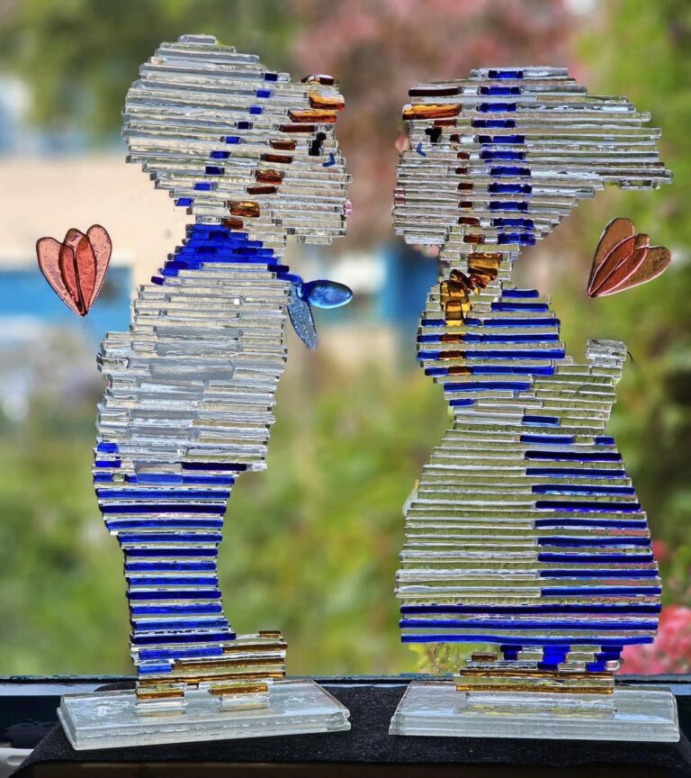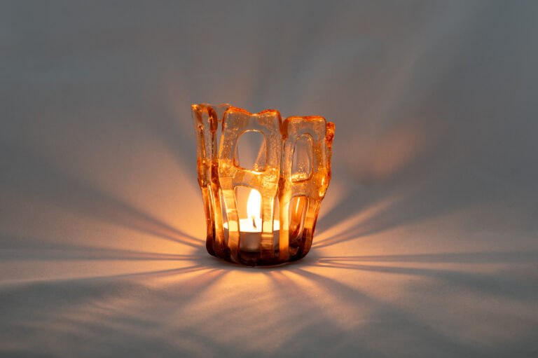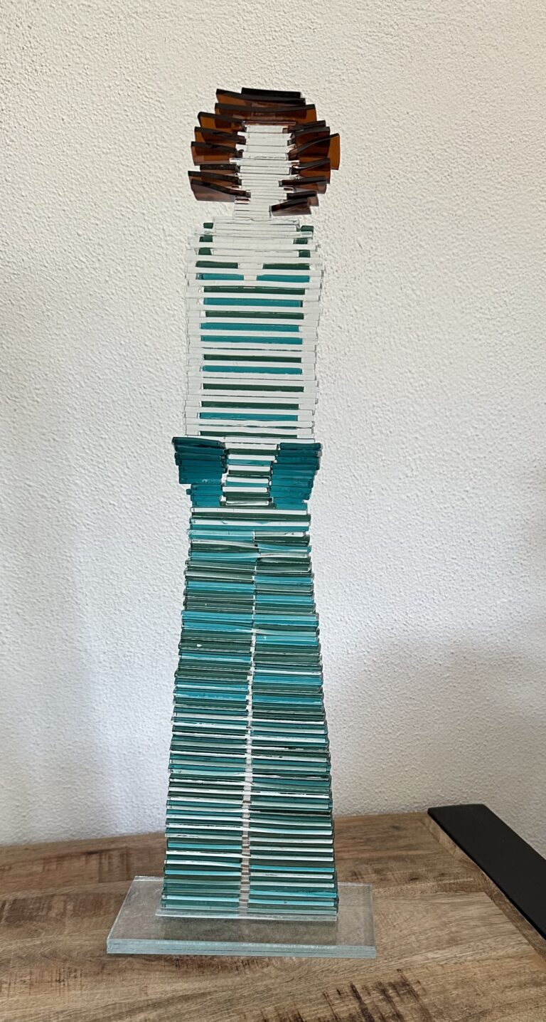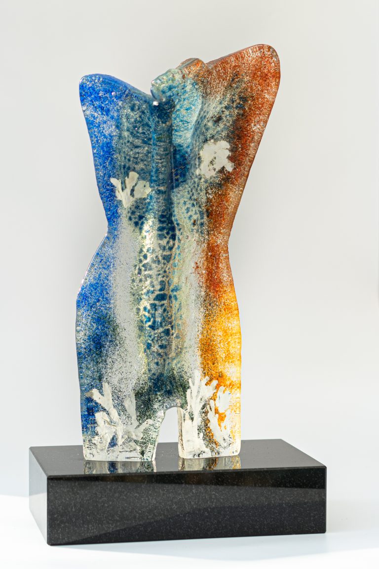Gegoten heet glas in en zandmal. Een torso is een eeuwenoude vorm. In glas wordt, door de vervorming als het glas nog …