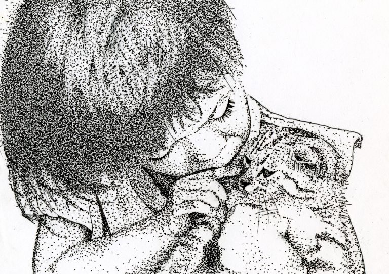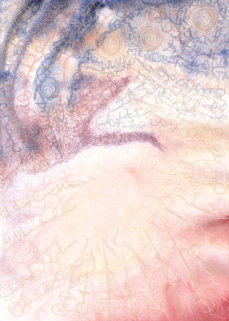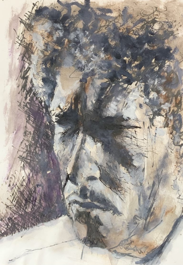 Voor de Gedenkkalender ‘in Loving Memory’. Mixed  Media: DigiPrint van digitale tekening in Sketchbook  beschildert met acrylverf op Canvas.
