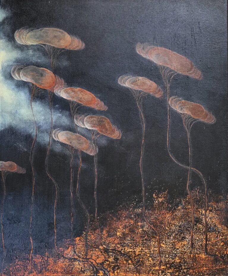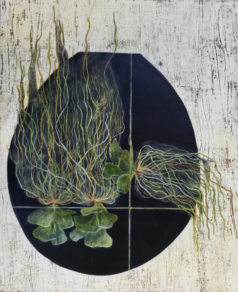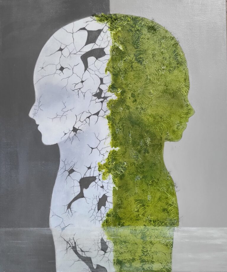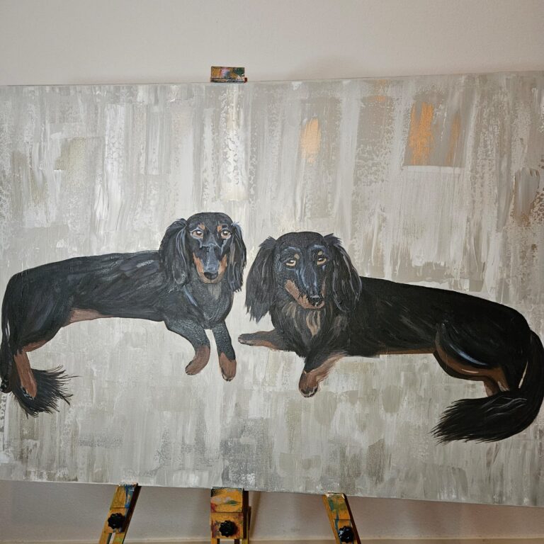 Unieke samenwerking met Tjitske van der Heide. Een doek tegelijkertijd samen geschilderd. Uit een serie van 25. Olie op doek 50×60