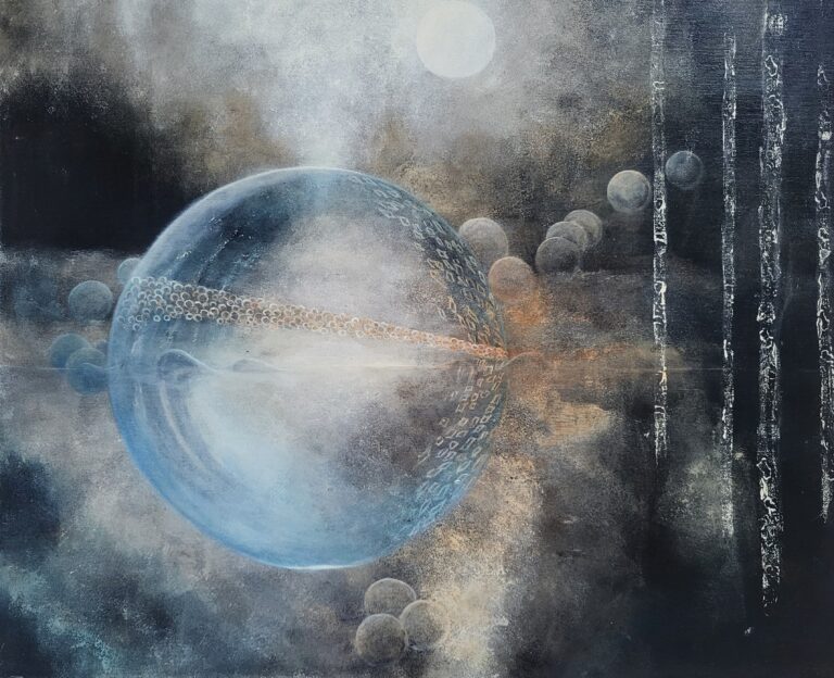 Dit is Asia, een fascinerend mixed media schilderij. Dit werk is een combinatie van verschillende materialen, acrylverf, acrylinkt, pastelpotloden en houtskool. Elk …