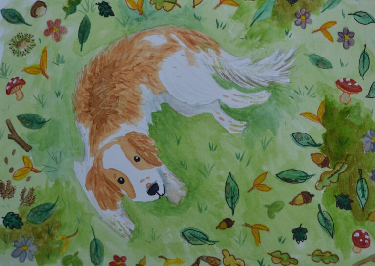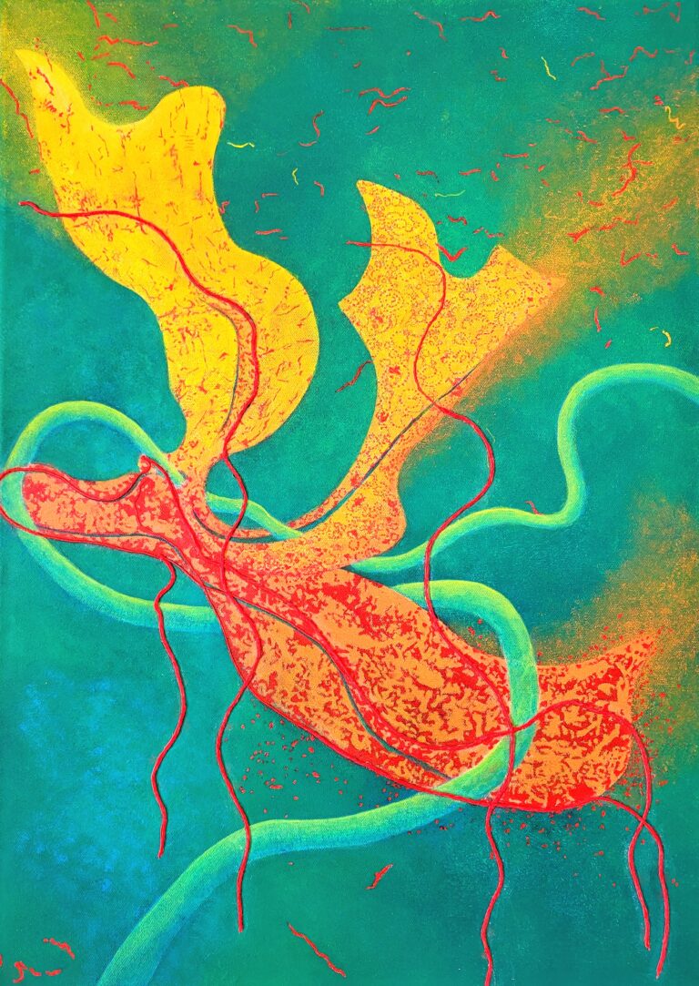 Acryl op papier, geschilderd door Hennie van Leeuwen