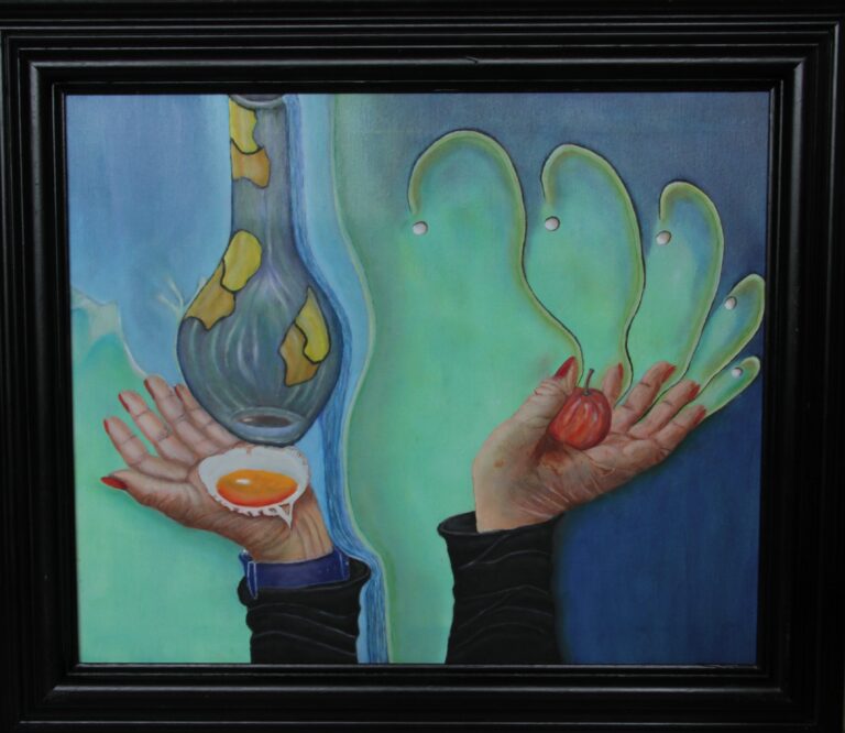 Olieverf op doek, 50x50cm Dit werk maakte ik voor keramiste Helma van de Water waarin ik haar werk vastlegde op doek. De …