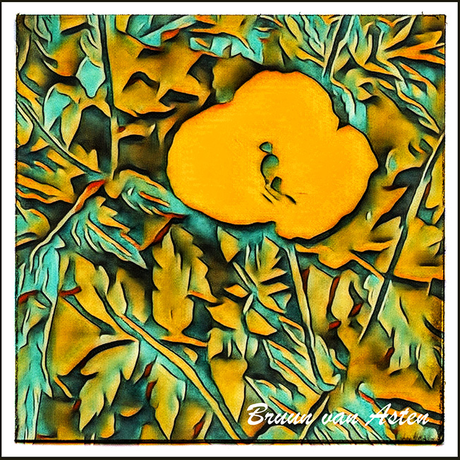Foto van een schijnpapaver gemaakt en bewerkt op mijn mobieltje.