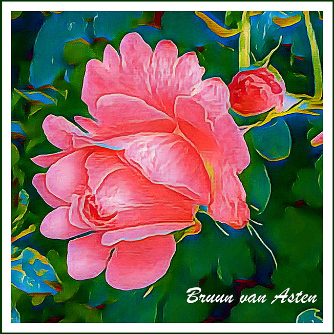 Foto van een pioenroos gemaakt en bewerkt op mijn mobieltje.