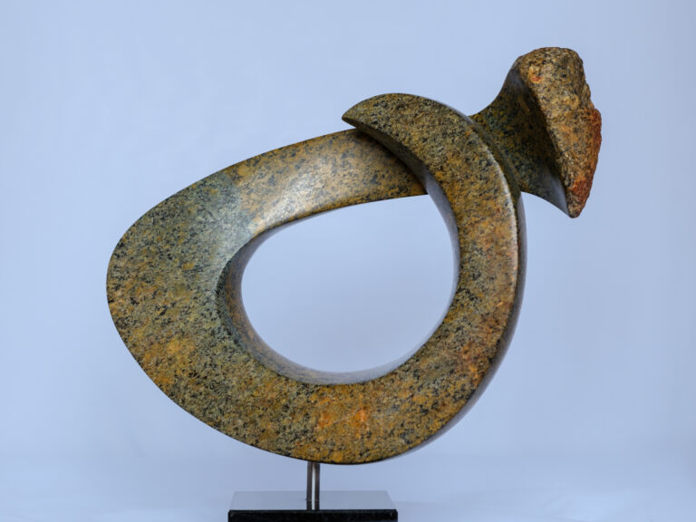 Het lijkt een gebogen stuk staal, maar in werkelijkheid is het een krul van serpentijn. Afmetingen ongeveer 30 x 30 cm (inclusief …