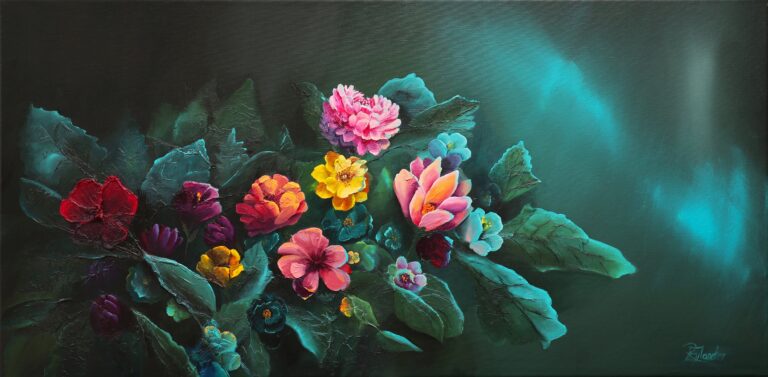 Olieverf op hout 65 x 50 cm Dahlia bloemen zijn een van de mooiste bloemen die de natuur te bieden heeft. Dahlia’s …
