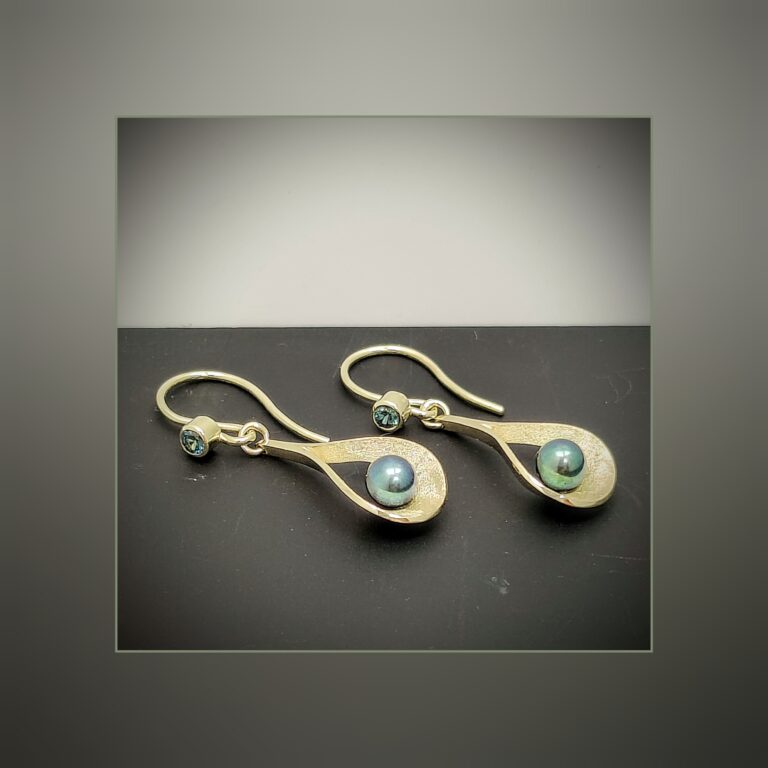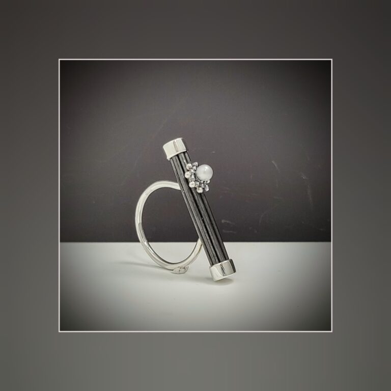 Zilveren smeedring met geoxideerde binnenzijde en grijze zoetwater parel.