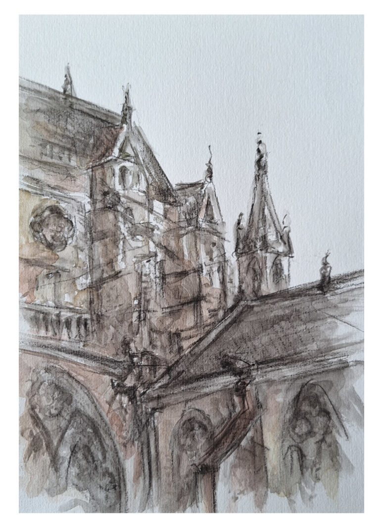 Aquarel op handgeschept papier, 15 x 21 cm.