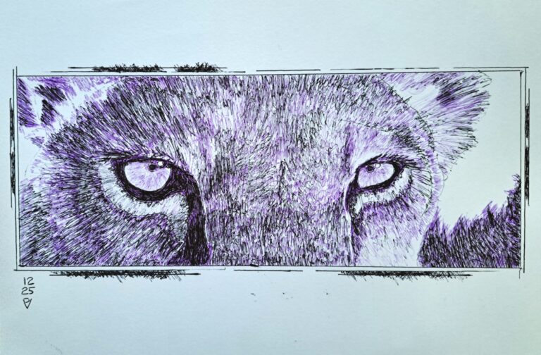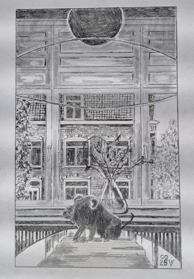 Potloodtekening gemaakt door Nel van Willigen naar aanleiding van een AI prompt