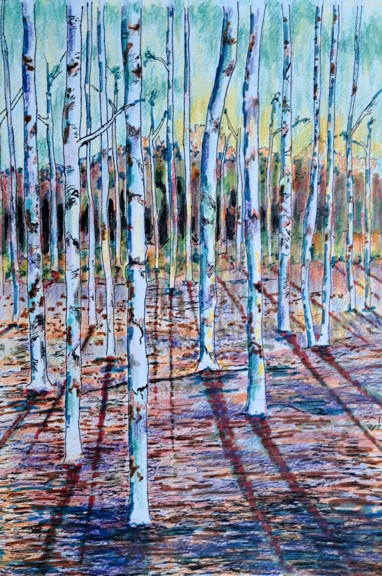 Berken pasteus geschilderd Olieverf op doek 80 x 60 cm