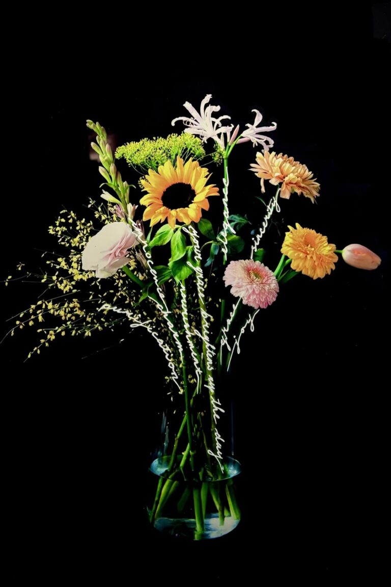 De inspiratie voor dit kunstwerk is een bloemstuk schilderij uit 1624. Een groot boeket geplaatst in een nis. De ondergrond is van …