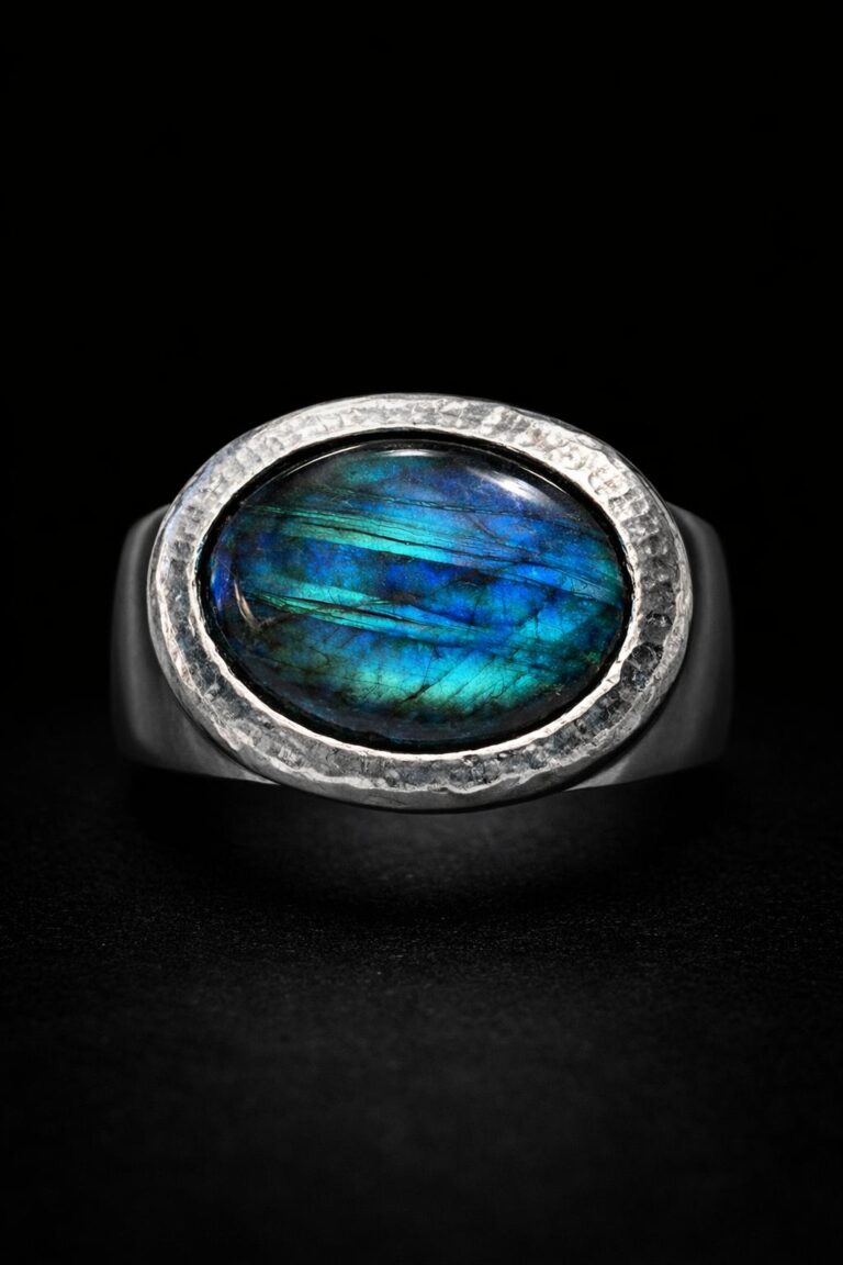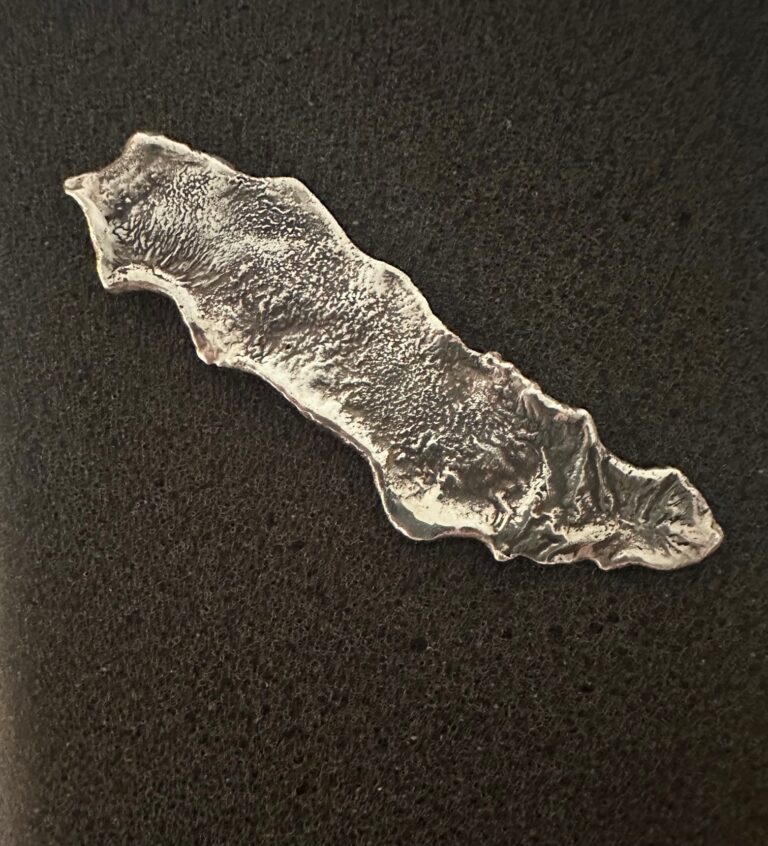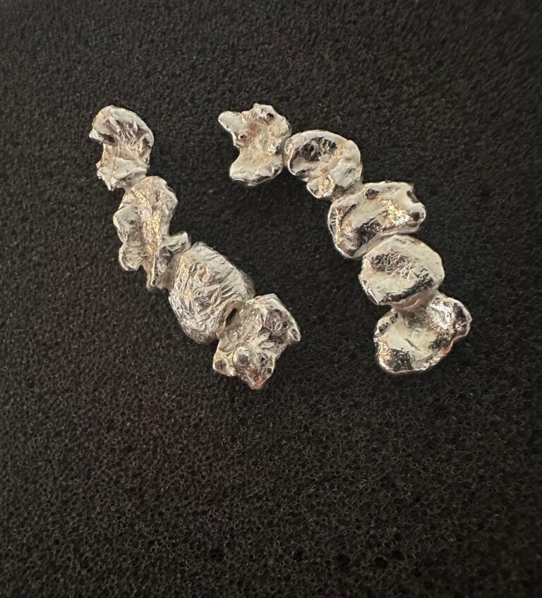 Wanneer magma zich naar buiten stuwt. Onvoorspelbaar hoe het stollingsgesteente zich manifesteert. Zilver met petrol kleurige zoetwater parels.