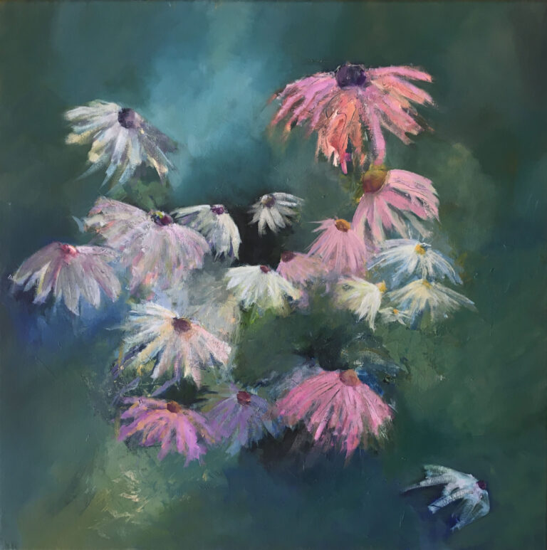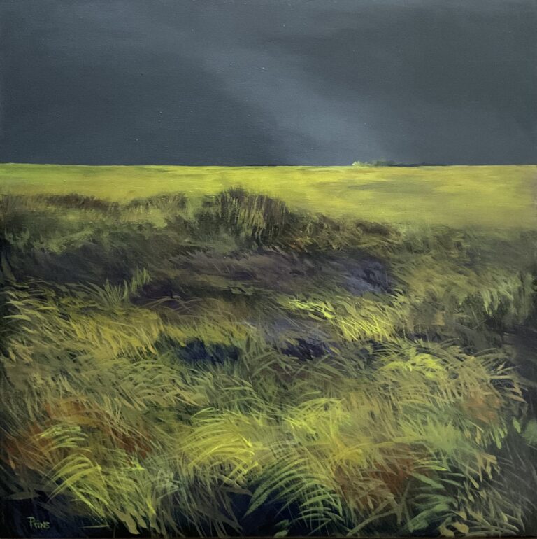 Grasduinen2 is het 5e schilderij uit de serie Bloemenweide. Bloemen moet je zoeken maar ze zijn er wel. Acryl op linnen 50 …