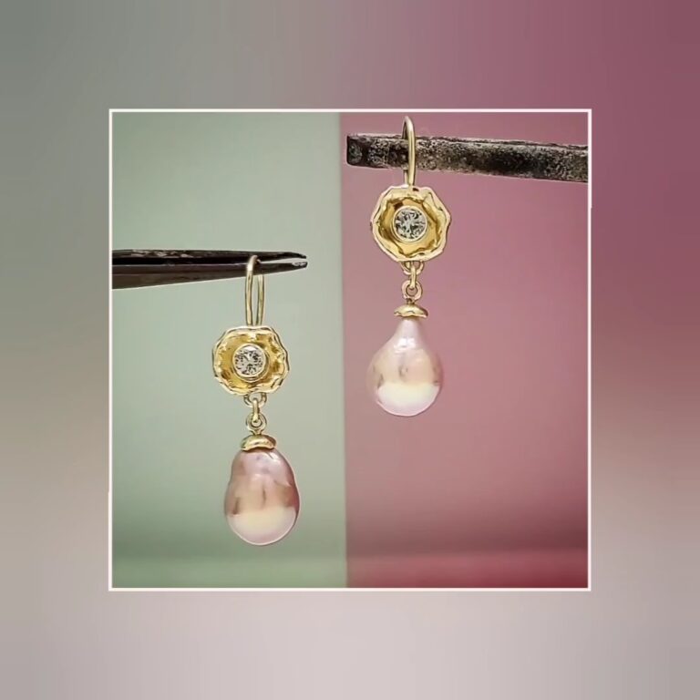 Deze gouden oorhangers, deels gematteerd en deels hoogglans gepolijst, dragen zwarte zoetwater parels met groenblauwe luster en in de haakjes teal kleurige …