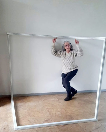 Eerst de presentatie van Edith Cohen over haar werk, opgefleurd door het uitdelen van kubussen. Edith gebruikt in haar werk oude technieken zoals borduren, vlechten en haken. Ze onderzoekt in haar werk elementaire driedimensionale vormen. Ze wordt geïnspireerd door de rijkdom aan geometrische vormen in de wiskunde en brengt die op een eigenzinnige wijze in beeld.