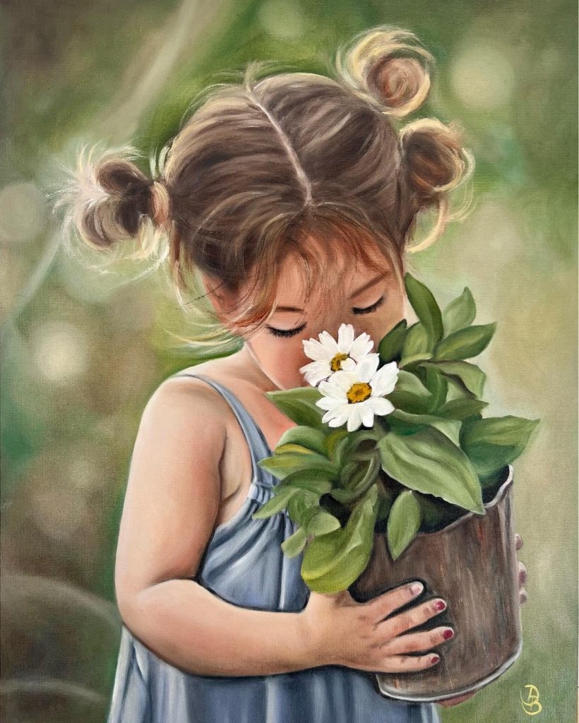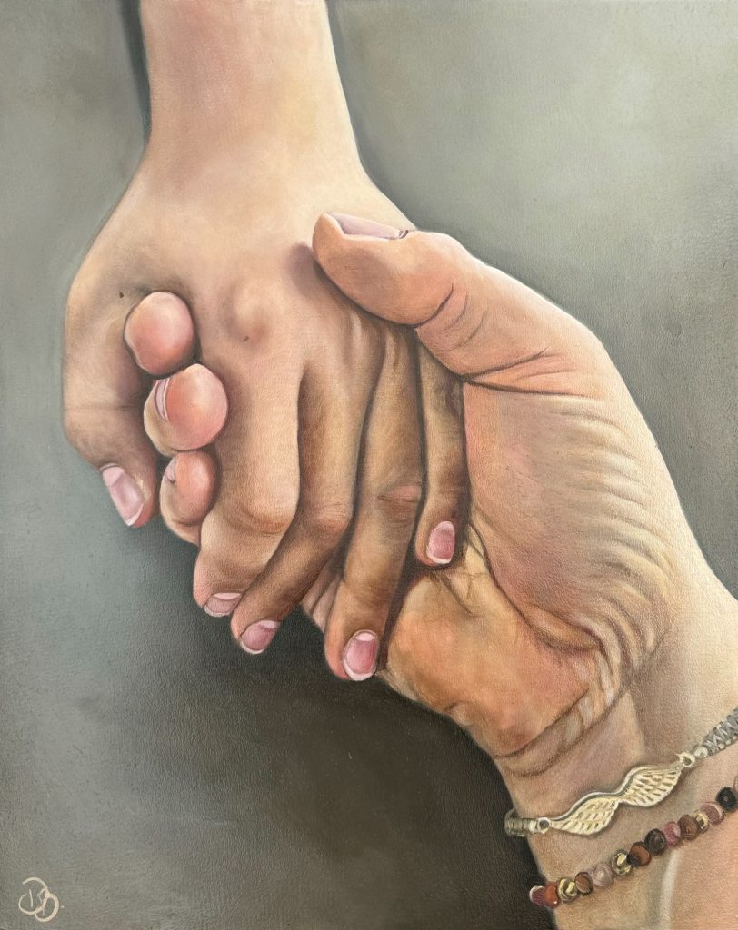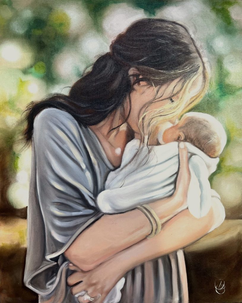 Onvoorwaardelijke liefde, toewijding en zorg, dat is moederliefde. Het is de warmte van een omhelzing, een blik vol trots en de wil om alles voor je kind te doen. Het transcendeert de tijd en overwint alle uitdagingen. Op mijn schilderij heb ik deze moederliefde vastgelegd. De tedere omhelzing van een moeder en kind, de blik van geruststelling en bescherming. Het is mijn manier om de onnavolgbare band tussen een moeder en haar kind vast te leggen. Ik hoop dat dit schilderij herinneringen oproept aan de onvervangbare liefde van moeder en dat het ons inspireert om deze liefde te koesteren en te delen.