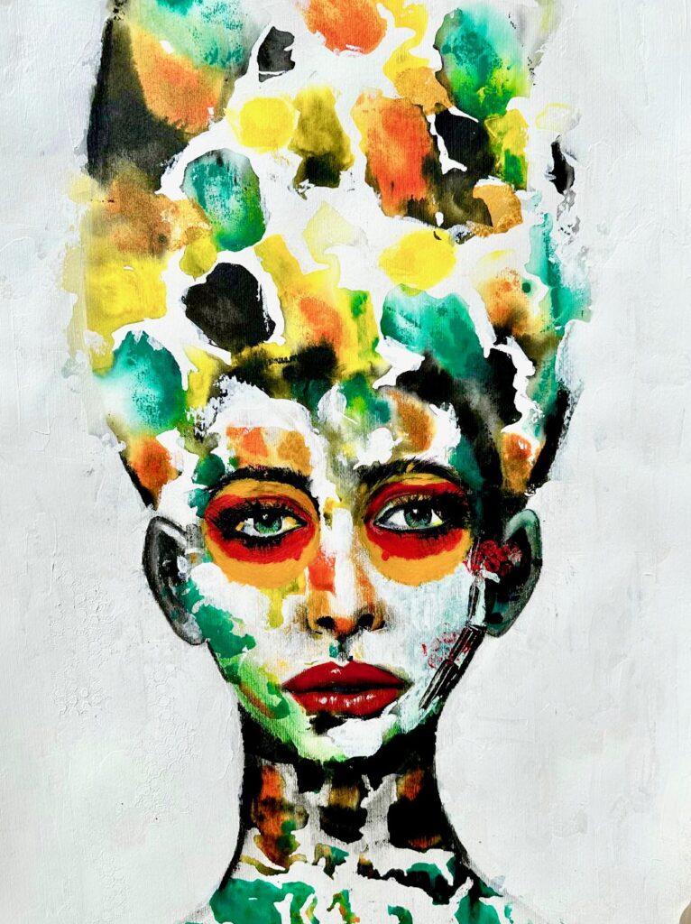 Maak van je notities een kunstwerk met Blue girl, een prachtig samenspel met rice paper, acrylinkt en collagetechnieken.