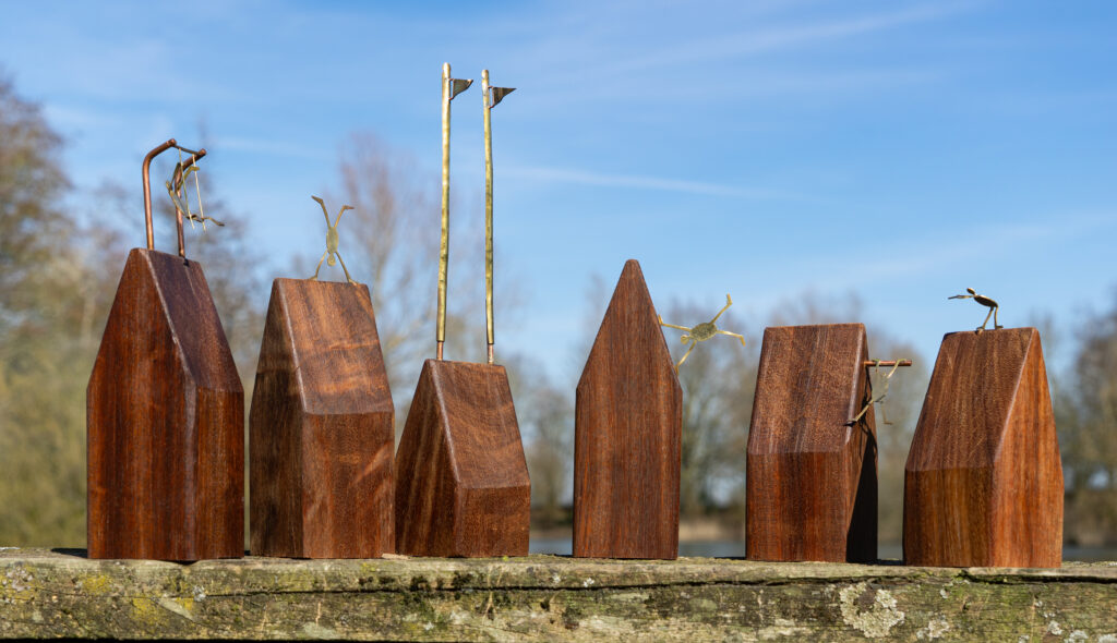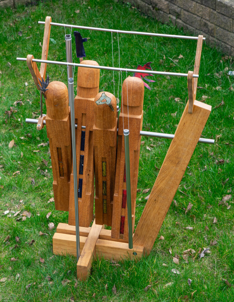 Samengesteld uit restanten angelim vermelho van een tuintrap en stukjes messing.