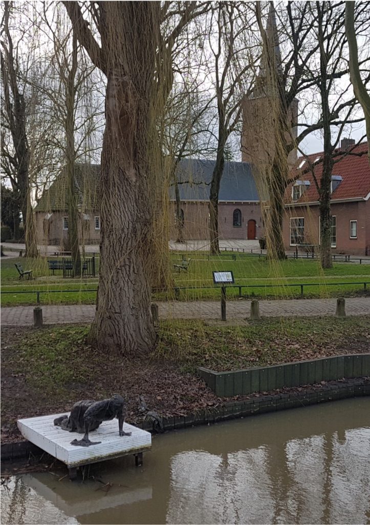 De aanleiding voor dit beeld was het stoepenproject van het Museum Schalkwijk: stoepen aan de Wetering werden gerestaureerd en opnieuw aangelegd. Deze stoepen werden vroeger o.a. gebruikt om de was te spoelen. Zo ontstond het idee voor het beeld, gemaakt aan de hand van een vooroorlogse foto van drie vrouwen die was aan het spoelen waren in de Wetering. De kunstenaar heeft eerst een klein beeldje van tin gemaakt dat door liefhebbers gekocht kon worden. Dit was een groot succes: er zijn er enkele honderden verkocht. Hiermee kon de grote, bronzen, uitvoering op de Brink worden gemaakt. De Wasvrouw is dus bedacht en voor een groot deel gefinancierd door de Schalkwijkers.