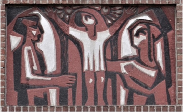 Gevelstenen, muurschildering van Harte / Heilige Familie School