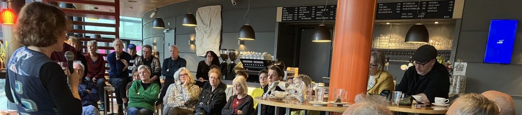 februari 2024 | Het Kunstcafé gaf een voorproefje van wat de Kunstfiets Dagen gaan brengen. Van alle deelnemers werd één kunstwerk getoond, dat ter plekke toegelicht werd door de kunstenaar als hij of zij aanwezig was. Deze opwarming viel in goede aarde! | |